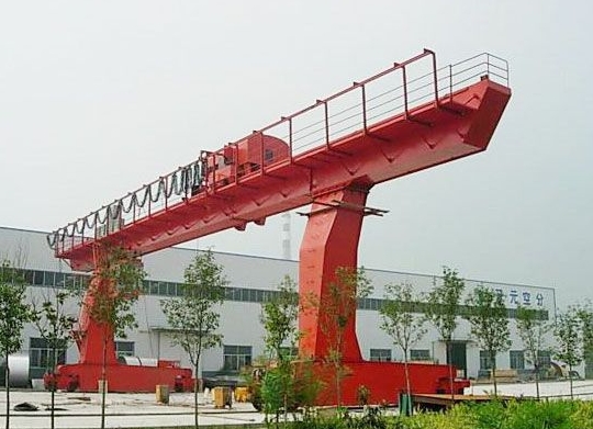 新疆龙门吊使用规模及注意事项 单梁龙门吊是横架于车间、库房和料场上空进行物料吊运的起重设备。由于它的两安坐落在巨大的水泥柱或许金属支架上,形状似桥。单梁龙门吊的桥架沿铺设在两侧高架上的轨道纵向运转,能够充分利用桥架下面的空间吊运物